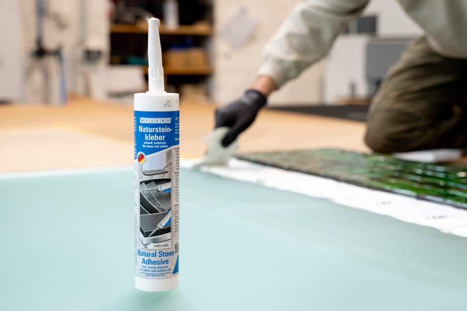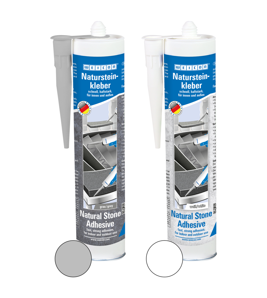 WEICON Natuursteenlijm is een sterke lijm voor de installatie van natuursteen, steen en keramiek. Dankzij de zeer hoge eerste hechting en snelle opbouw van de kleefkracht is verlijming zelfs mogelijk op verticale oppervlakken zoals muren. De steenlijm is geschikt voor vele binnen- en buitentoepassingen. Het is vorstbestendig, heeft een hoge temperatuurbestendigheid van -40 °C tot +90 °C en een hoge weer- en UV-bestendigheid. De natuursteenlijm hardt snel uit en heeft een zeer hoge eindsterkte. Na uitharding kan de lijm worden geschuurd en blijft elastisch om beweging te compenseren. De steenlijm is siliconenvrij, isocyanaatvrij, halogeenvrij en oplosmiddelvrij. Het kan worden gebruikt in een breed scala aan toepassingen - voor het verlijmen van vensterbanken, tegels, plinten, sierlijsten of traptreden. WEICON Natuursteenlijm hecht zeer goed op een grote verscheidenheid aan materialen, zoals hout, materialen op houtbasis, kunststoffen, metalen, glas en minerale ondergronden. Hij is verkrijgbaar in grijs en wit.