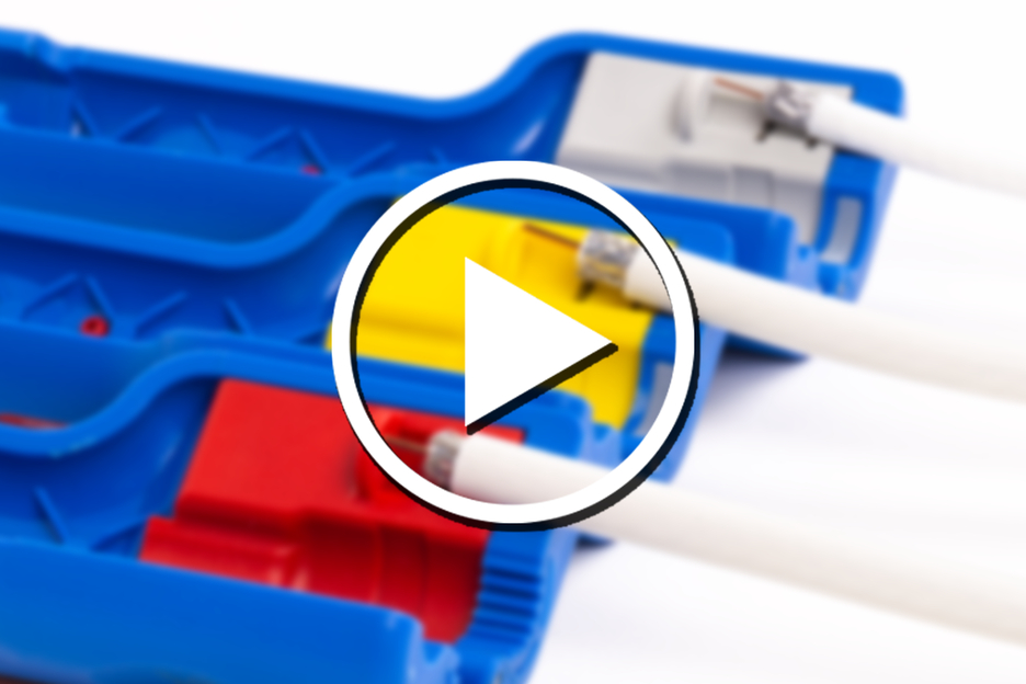 Snel ontmantelen en strippen van coaxkabels met één handeling (2-voudig snijden)