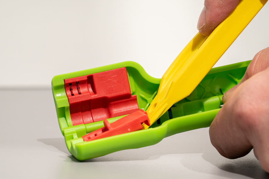 De Coax-Stripper No. 1 F Plus zorgt voor snel en eenvoudig strippen en afsnijden van coaxkabels in slechts één handeling. Dankzij de twee tegenover elkaar liggende paren messen kan het stripproces snel en ruimtebesparend worden uitgevoerd met meerdere, lichte draaibewegingen. De vooraf ingestelde stripmaat is geschikt voor standaard F-schroefconnectoren (6 / 4 mm). Indien nodig kunnen de mesinzetten worden gewijzigd om andere stripafmetingen te realiseren, bijvoorbeeld voor compressiepluggen (6,5 / 6,5 mm). Inzetstukken met andere stripafmetingen zijn optioneel verkrijgbaar en kunnen eenvoudig worden verwisseld met behulp van het "kliksysteem". Het gereedschap is bijvoorbeeld geschikt voor tv-antennekabels van 6 - 8 mm. De grijpbekken kunnen worden gebruikt om F-schroefverbindingen op de gestripte kabel te draaien. De geïntegreerde open zeskant met een sleutelbreedte van 11 mm (SW 11 mm) maakt ruimtebesparende montage en demontage van F-connectoren voor latere aansluiting mogelijk. De zeskant maakt een zeer goede toegankelijkheid mogelijk, vooral in krappe ruimtes, en kan zonder verdere voorbereiding worden bediend. Een vergrendelingsmechanisme zorgt ervoor dat het gereedschap veilig kan worden opgeborgen.