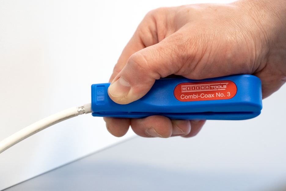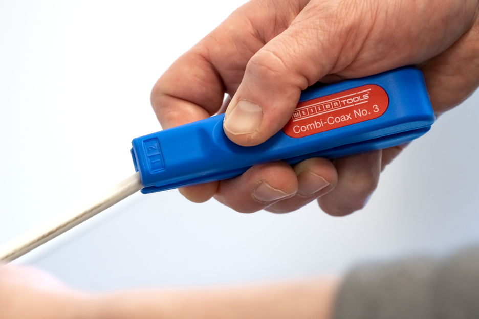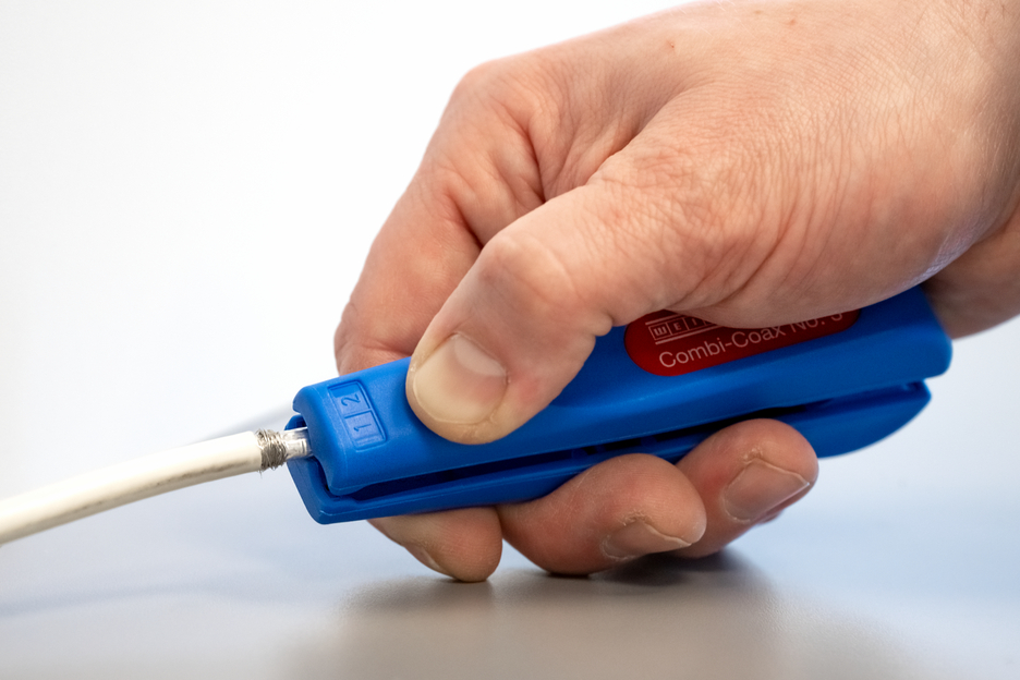 Bereik 4,8 - 7,5 mm Ø Ook geschikt voor flexibele kabels Geïntegreerde en eenvoudig toegankelijke zijknipper tot 8 mm Ø Trapsgewijs strippen van alle gangbare coax-kabels
