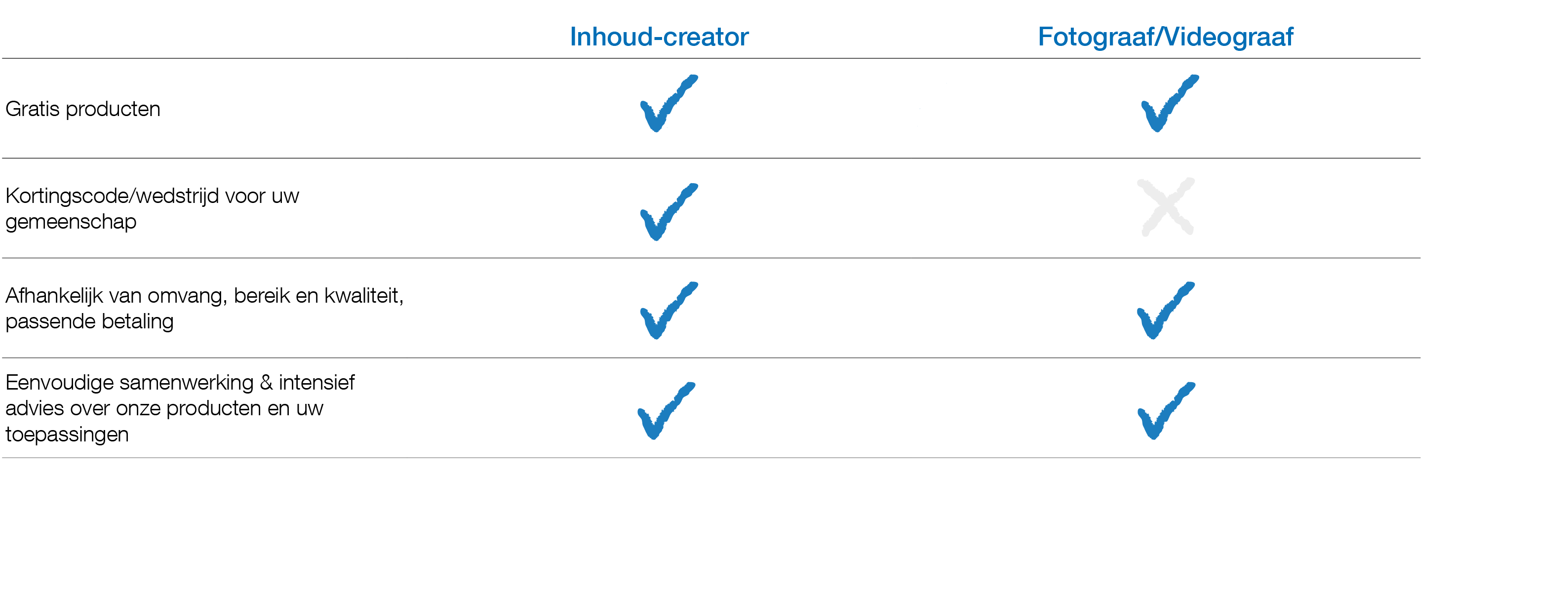 Samenwerken met ons is eenvoudig en ongecompliceerd en we staan klaar om u te helpen met al uw vragen over onze producten en de toepassing ervan. We richten ons op duurzame verbindingen. Met sommige van onze influencers werken we al meerdere jaren samen en we zijn altijd blij om samen te groeien. Bekijk onze blogpost van onze Influencer Day 2021.