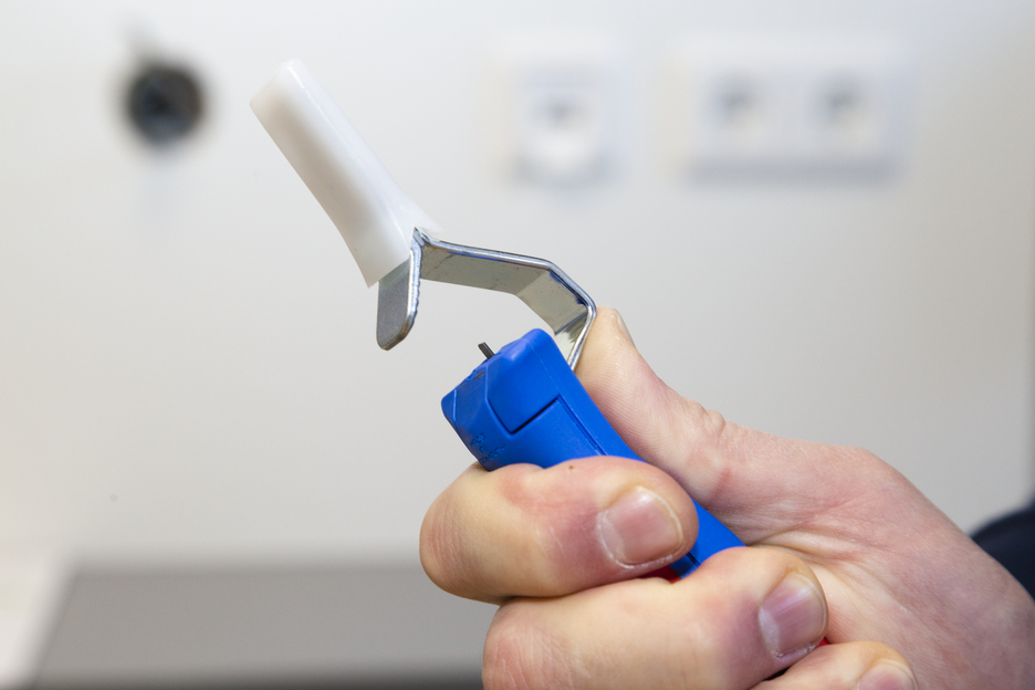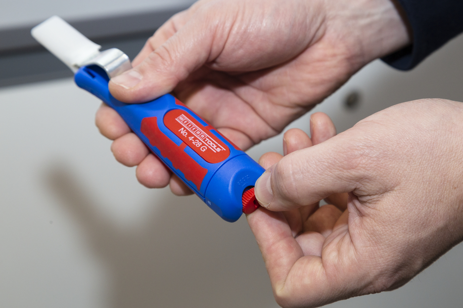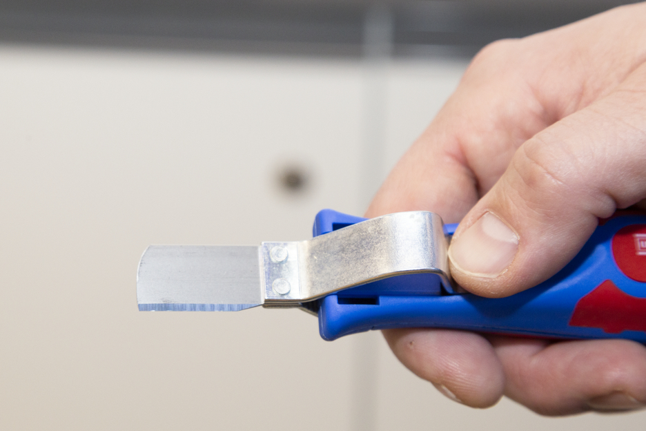 Grand diamètre du manche pour bien tenir en main Vis de réglage en continu facile à utiliser Dégainage précis, rapide et sûr Remplacement rapide de la lame intérieure grâce à une fermeture à baïonnette