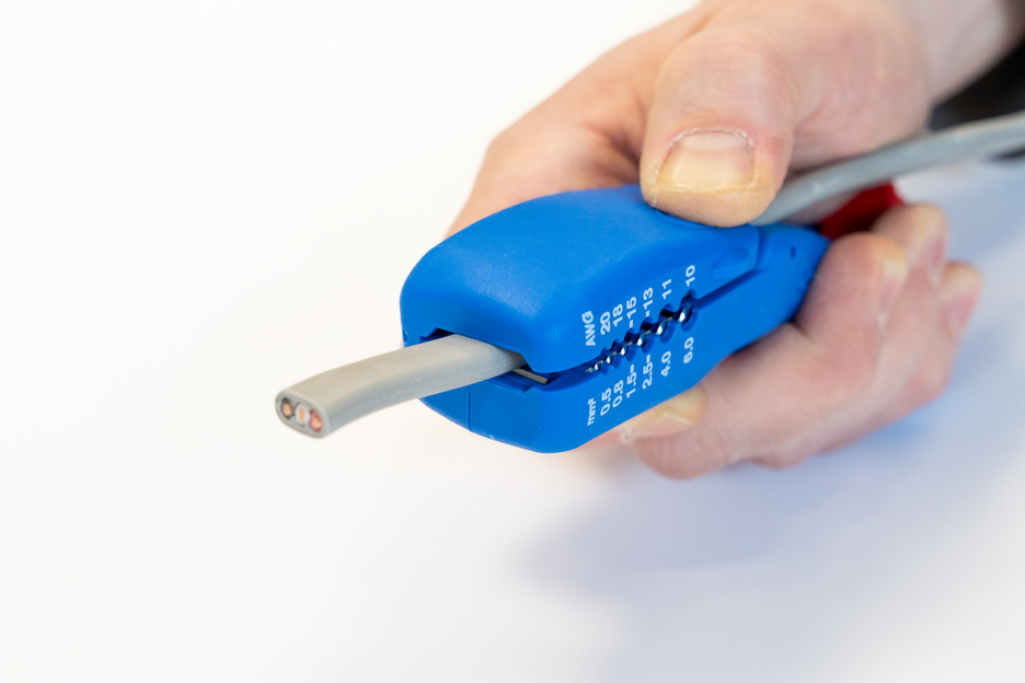 Le couteau pour câbles plats et ronds permet de dénuder tous les câbles plats et ronds courants de manière rapide, précise et sûre. L'outil a été conçu pour des câbles plats d'une largeur maximale de 18 mm et pour des câbles ronds d'un diamètre maximal de 13 mm. .Grâce au guide-câble situé à la tête de l'outil, les coupes longitudinales sont très faciles à réaliser, en particulier sur les longues distances. Les coupes longitudinales peuvent être effectuées aussi bien sur des câbles plats que sur des câbles ronds. Sous le guide-câble se trouve un couteau intérieur rotatif. Comme tous les couteaux à câbles WEICON TOOLS, il permet d'effectuer des coupes circulaires et longitudinales sur des câbles ronds (de 6 à 13 mm) en une seule opération. Une molette de réglage verrouillable permet de régler confortablement et précisément la profondeur de la lame par paliers de 0,1 mm à 3 mm. Cela permet d'éviter d'endommager les couches plus profondes. Deux autres lames ont été intégrées à la base de cet outil pratique. Celles-ci servent à inciser parallèlement la gaine extérieure ou l'isolation. Ainsi, la gaine extérieure peut être facilement retirée, même dans des environnements très étroits, comme les boîtes de dérivation ou les canalisations de câbles. La conception spéciale de l'outil permet de dénuder des longueurs importantes aussi bien du côté de la tête que du pied. Les câbles plats d'une largeur maximale de 18 mm et les câbles ronds d'un diamètre maximal de 13 mm peuvent être facilement passés à travers l'outil. Une fonction de dénudage supplémentaire a été placée sur le côté inférieur du boîtier de l'outil. Il permet de dénuder tous les conducteurs flexibles et massifs courants d'une section comprise entre 0,5 et 6 millimètres carrés.
