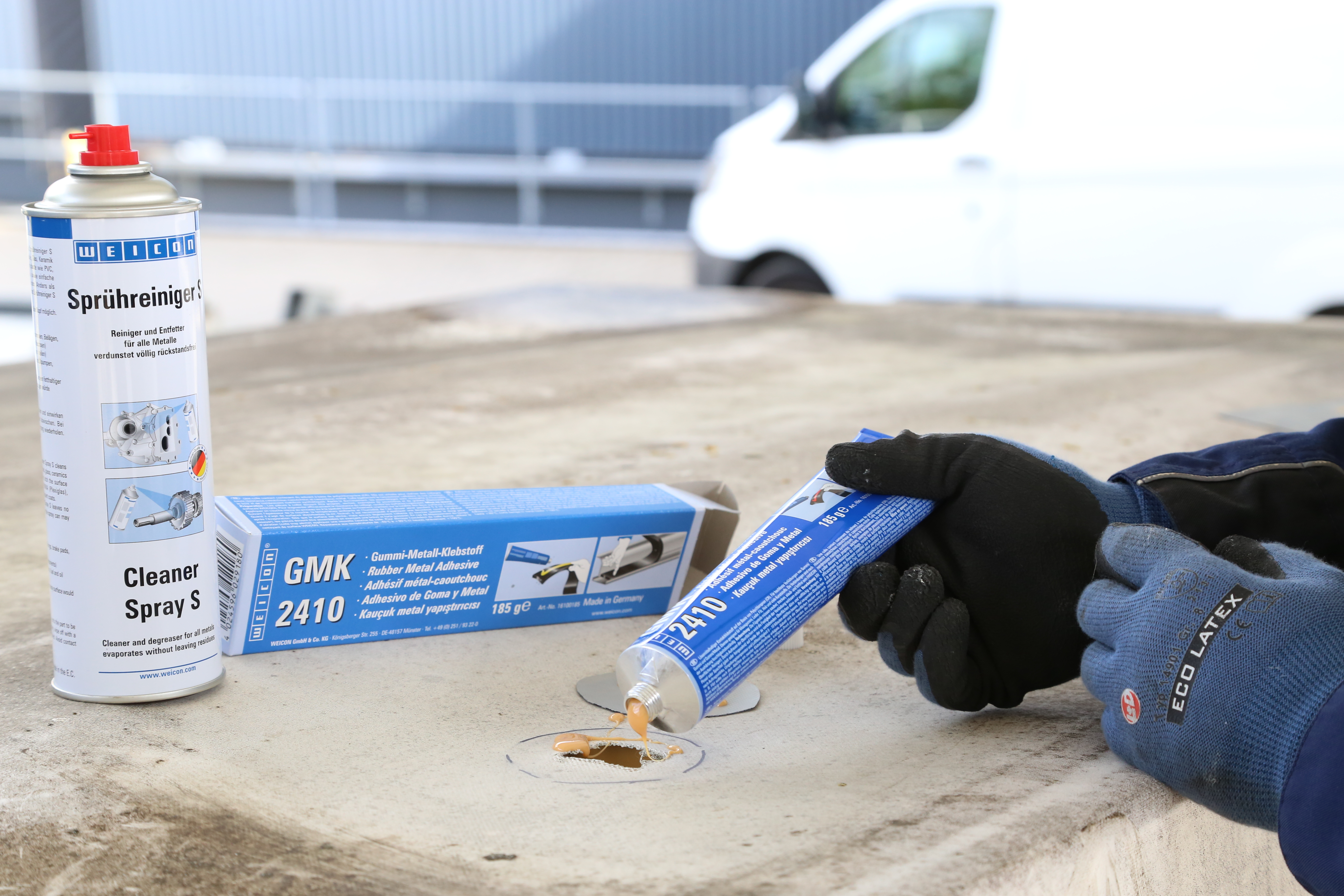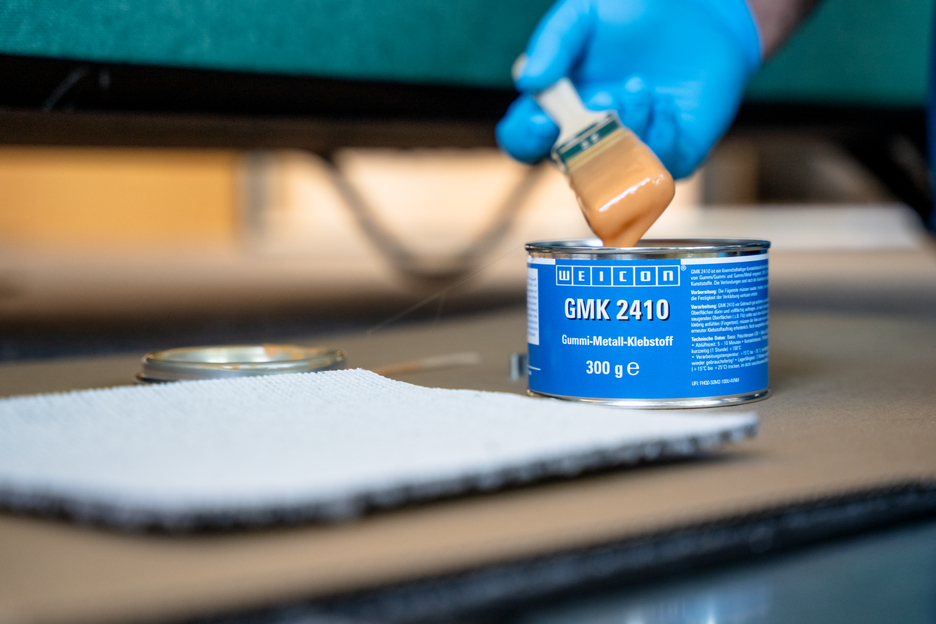 GMK 2410 est un adhésif à base de polychloroprène (CR) pour coller, de façon tenace, sur toute la surface et de façon flexible : - caoutchouc sur caoutchouc - caoutchouc sur métal GMK 2410 colle également des matières telles que caoutchouc mousse, cuir, feutre, matériaux isolants, textiles, bois et de nombreuses matières plastiques. WEICON GMK 2410 ne convient pas pour des matériaux tels que, par ex., la mousse de polystyrène, le polyéthylène, les pièces en polypropylène, la mousse de PVC souple et le cuir artificiel en PVC.