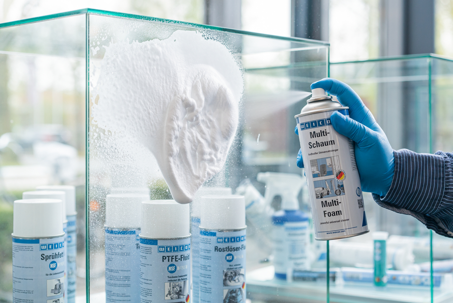 WEICON Multi-Mousse est un nettoyant universel puissant permettant de nettoyer sans laisser de traces, neutre pour l'environnement, biodégradable, exempt de phosphates, d'aldéhyde formique et d'additifs corrosifs ou caustiques. Multi-Mousse nettoie les surfaces les plus diverses, comme les métaux, les matières plastiques, le verre, la céramique ou les surfaces revêtues d'enduit ou de peinture. Le spray s'utilise partout, dans l'industrie comme dans l'artisanat ou dans le domaine privé.