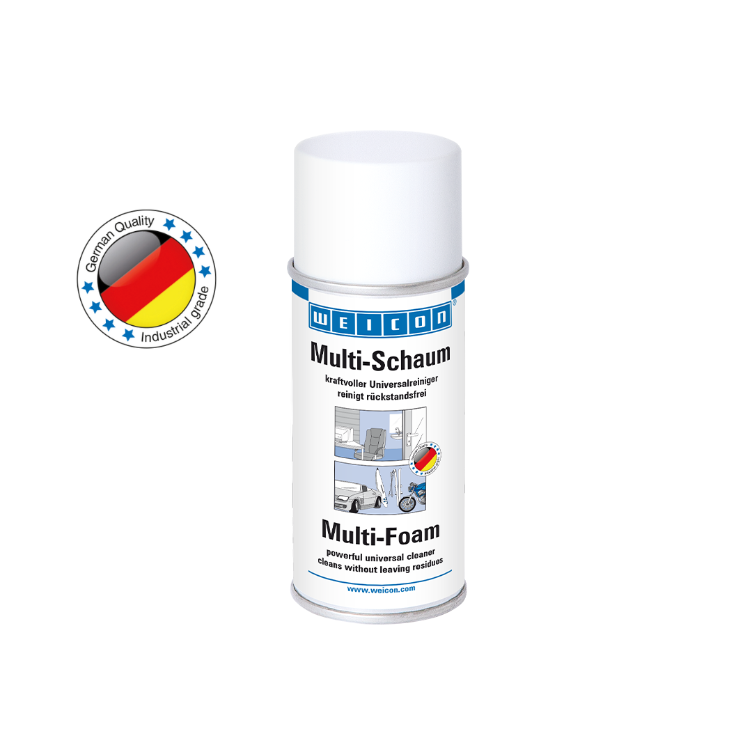 WEICON Multi-Mousse est un nettoyant universel puissant permettant de nettoyer sans laisser de traces, neutre pour l'environnement, biodégradable, exempt de phosphates, d'aldéhyde formique et d'additifs corrosifs ou caustiques. Multi-Mousse nettoie les surfaces les plus diverses, comme les métaux, les matières plastiques, le verre, la céramique ou les surfaces revêtues d'enduit ou de peinture. Le spray s'utilise partout, dans l'industrie comme dans l'artisanat ou dans le domaine privé.