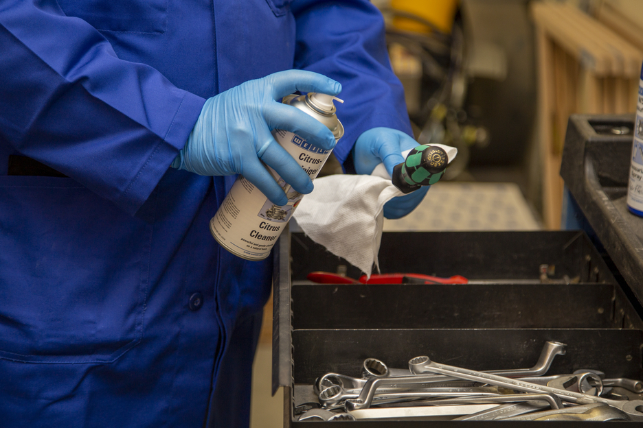 WEICON Nettoyant Citrus est un nettoyant universel sur la base d’alcohol et extraits d’écorces d’agrumes. Grâce à sa teneur élevée en isopropanol (plus de 75 %), WEICON Nettoyant Citrus profite de son effet désinfectant et soutient ainsi le nettoyage approfondi et la désinfection des surfaces. Produit à usage universel, il s'utilise également dans l'industrie et l'artisanat, dans la construction de fenêtres, les lieux et les transports publics, dans les entreprises de construction, la gestion des installations et dans le ménage. Le Nettoyant Citrus de WEICON nettoie les matériaux les plus divers, comme le métal, les plastiques, le verre, la céramique ou les surfaces revêtues ou peinte*. WEICON Nettoyant Citrus atteint également un haut degré d'efficacité et d'efficience dans l'hygiène de base et le soutien de mesures d'hygiène supplémentaires, le nettoyage des outils à main fréquemment utilisés, le nettoyage des encrassements par les crayons, les stylos à bille et les feutres. *Par souci de sécurité, tester au préalable la compatibilité des matériaux à un endroit soustrait aux regards.