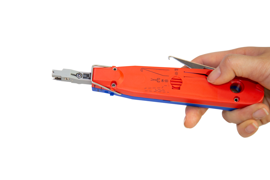 avec crochet de traînage pliant et lame de déverrouillage, pour conducteurs de 0,35 à 0,9 mm et brins de 0,7 à 2,6 mm de diamètre, possède un palpeur pour déterminer la position des brins.