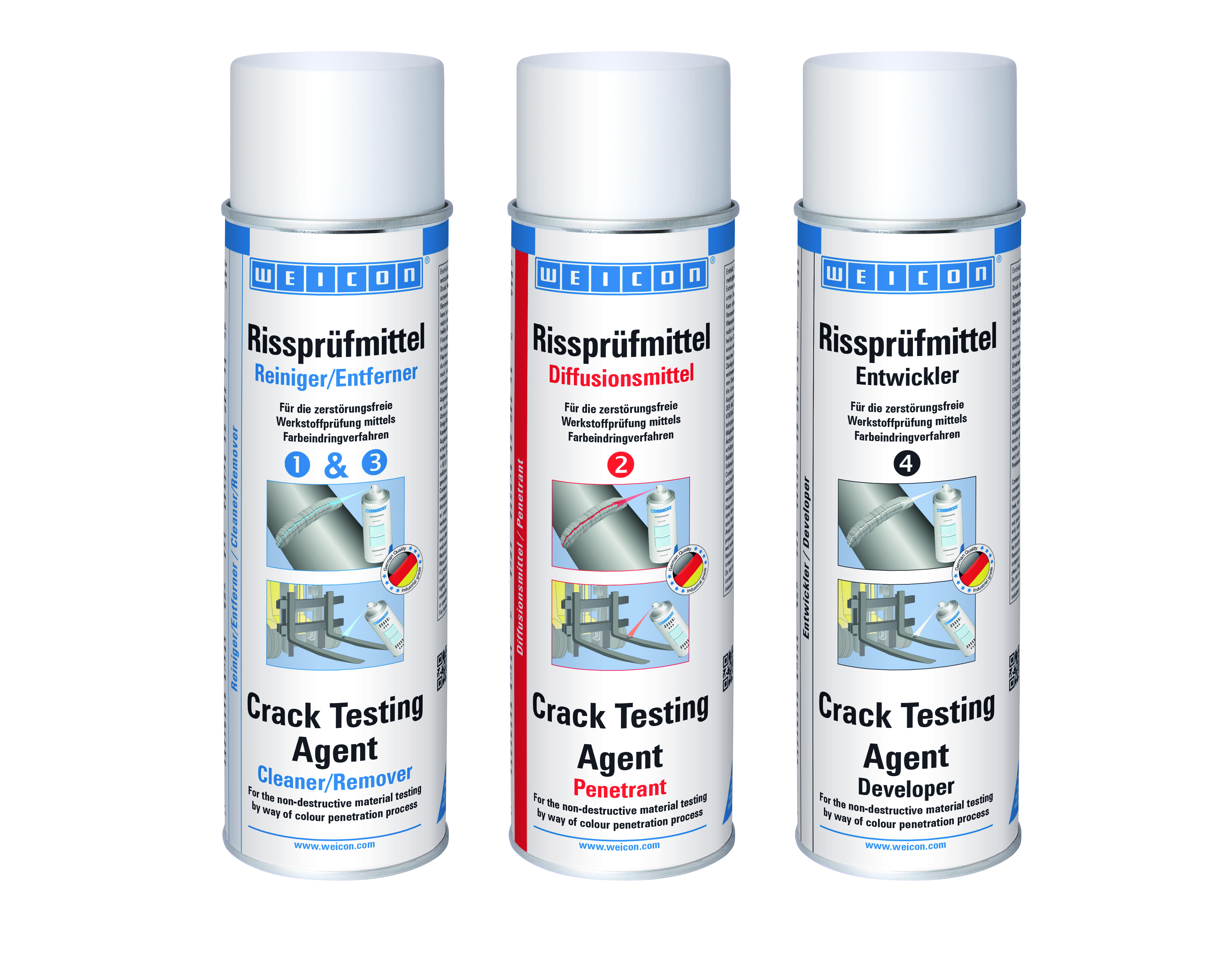 Pénétrant rouge avec de très bonnes propriétés de fluage pour le contrôle non destructif des matériaux – lavable au solvant. Convient pour les métaux, de nombreuses matières synthétiques, des matières céramiques, le verre etc. Faire des essais de compatibilité avant de l‘utiliser sur des matières synthétiques.