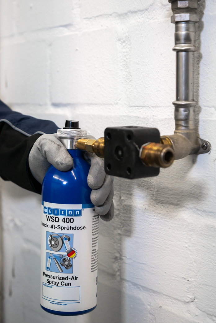 Pour remplir la bombe aérosol à n‘importe quel réseau d‘air comprimé.