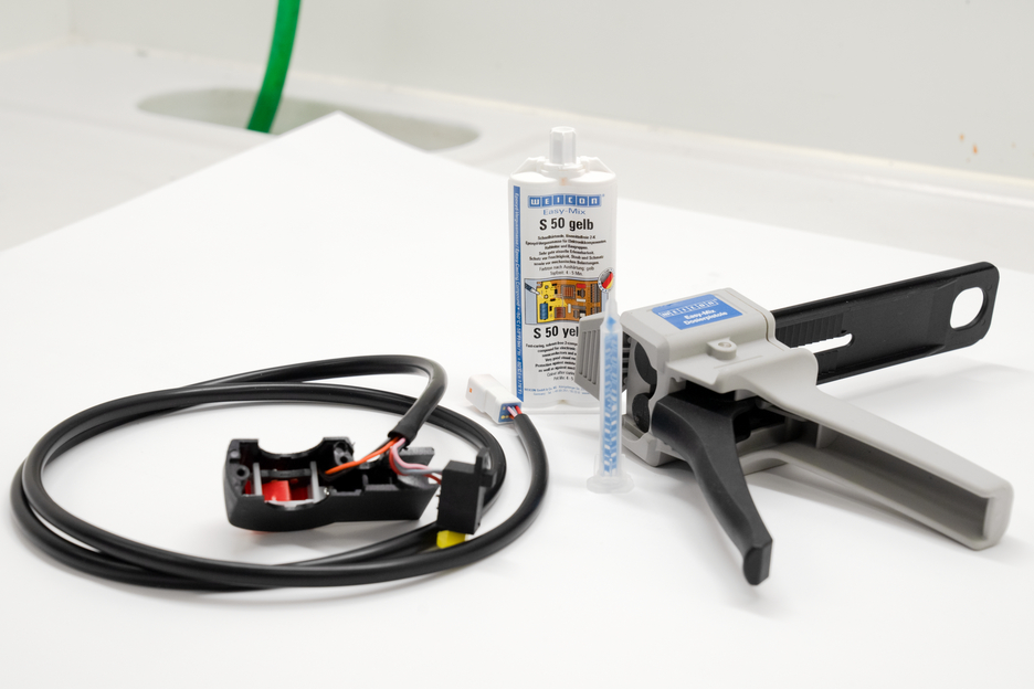 WEICON Easy-Mix S 50 jaune est une résine de coulée très réactif qui, grâce à sa forte adhérence et à son durcissement rapide, peut également être utilisé comme adhésif. Le système de résine époxy, résistant à des températures élevées jusqu'à +180 °C, est visqueux, autonivelant, durcit rapidement et est résistant aux chocs. La résine de coulée a une courte durée de vie en pot de 4 à 5 minutes. Ce composé adhère très bien à une grande variété de surfaces, telles que le métal, les polymères renforcés de fibres de verre, le bois, le verre, la céramique et la pierre. Dans le secteur électronique, la résine de coulée sert comme protection des composants électroniques, semi-conducteurs et modules. Elle protège les composants de l'humidité, de la poussière et des saletés, ainsi que des contraintes mécaniques. Easy-Mix S 50 jaune convient pour l'utilisation dans divers domaines, tels que les travaux de scellement dans les industries électro-techniques et électroniques, pour sceller des raccordements de câbles, pour des travaux d'isolation thermique et acoustique, la construction métallique, la construction de réservoirs et d'appareils, la robinetterie et la technique d'aération et de climatisation. Grâce à sa couleur jaune voyante, Easy-Mix S 50 jaune facilite le contrôle visuel. La mise en œuvre de la résine de coulée s'effectue à l'aide du système Easy-Mix, très simple d'utilisation. Le Pistolet-Boîteur Easy-Mix D 50 est nécessaire pour l'application des produits Easy-Mix en conditionnement de 50 ml.