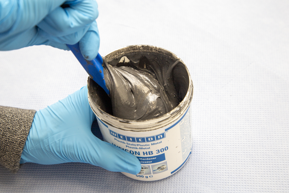 WEICON HB 300 est pâteux, à charge d'acier, résiste aux hautes températures jusqu'à +200 °C (392 °F) (brièvement jusqu'à +280 °C/536 °F) et s'applique dans un rapport de mélange de 1:1. Ce système à base de résines époxy s'applique également sur des surfaces verticales et s'utilise pour réparer et coller des pièces en fonte et en métal, pour remplir des retassures, réparer des dommages à des récipients, des carrosseries et des éléments de machines et pour rendre étanches des pompes et des tuyaux. Le produit s'utilise dans la construction de machines, d'installations et d'appareils et dans beaucoup d'autres domaines industriels.