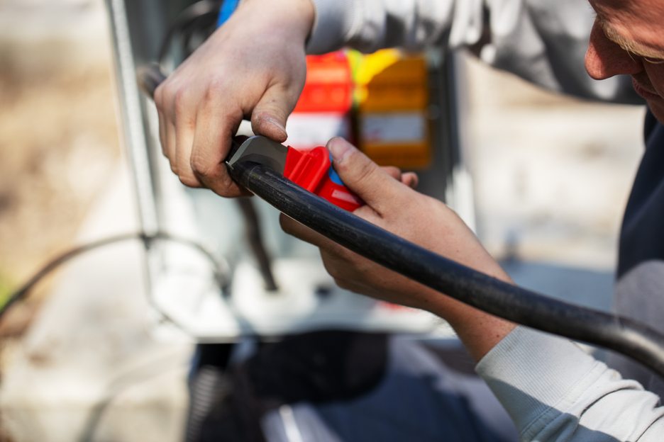 Snel aansnijden van meervoudig geïsoleerde kabels Bescherming van de binnengeleider door schoenvormige mespunt Goede krachtoverdracht door geoptimaliseerde handgreep