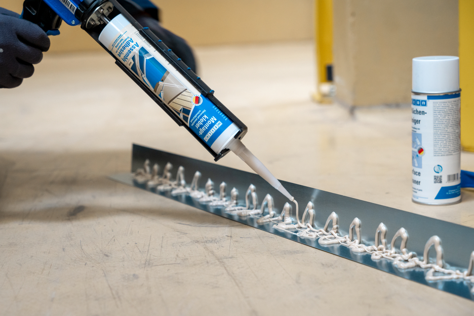 Snelle en sterk hechtende contactlijm op basis van synthetisch rubber voor verlijmingen binnen en buiten. De elastische 1K-montagelijm kan op veel materialen worden gebruikt, zoals hout en houtvezelplaten, MDF- en OSB-platen, decorplaten, staal, aluminium, kunststof, PVC, gips, gipsplaat, keramiek, metselwerk, tegels, steen en beton. De lijm is geschikt voor het snel en permanent bevestigen van plinten, panelen, vloerelementen, wandbekledingen, vensterbanken, drempels, houten deurposten, sierprofielen, enz.