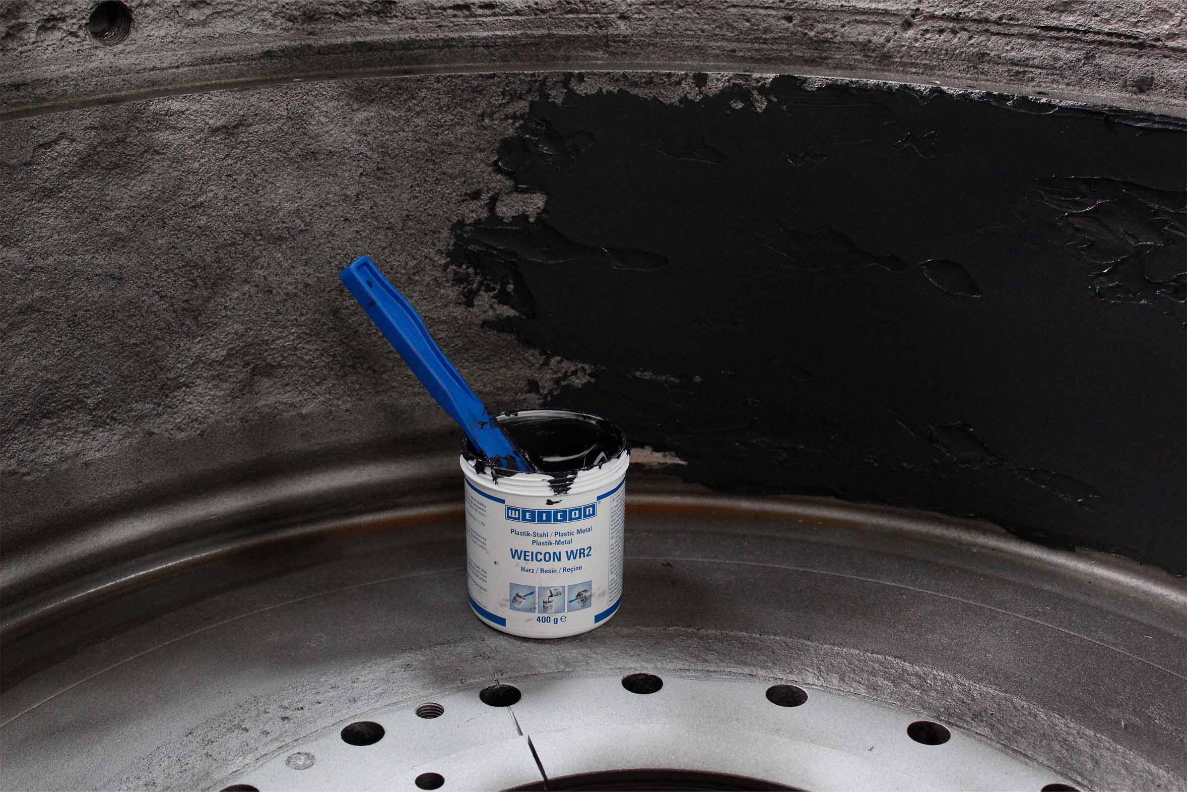 Het onderhoud van chemische installaties is onvermijdelijk. Agressieve en schurende chemicaliën slijten het staal op systemen weg, hier bijvoorbeeld op een trechterpallet. Regelmatige inspecties, preventief onderhoud en snelle reparaties zijn cruciaal voor stabiele bedrijfsprocessen, weinig stilstand en een hoge productiviteit. Het epoxyharssysteem WEICON Ceramic HC 220 is ideaal voor reparatiewerkzaamheden aan machines en apparatuur, in de apparatenbouw en in andere takken van industrie. Het wordt gekenmerkt door een hoge slijtvastheid en beschermt intensief gebruikte oppervlakken tegen slijtage. Met een temperatuurbestendigheid tot +220 °C, vloeibaarheid, keramische vulling, chemische weerstand en hoge kleefkracht biedt het een breed scala aan mogelijke toepassingen.