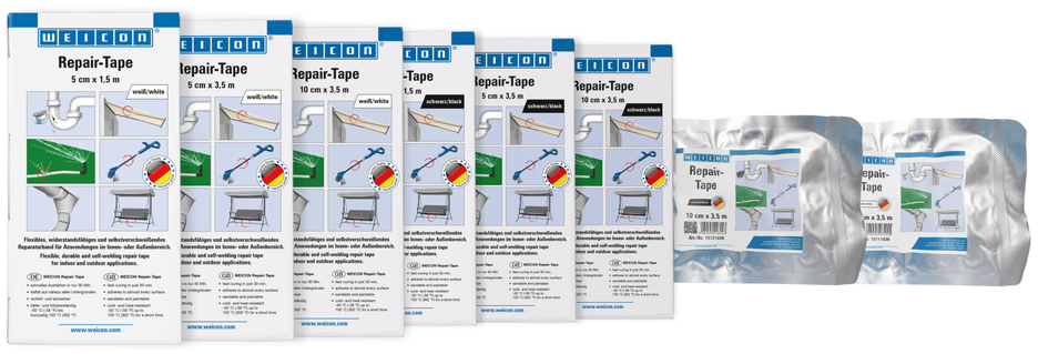 Flexibele, bestendige en zelfdichtende reparatietape van glasvezelversterkte kunststof voor snelle noodreparaties binnen of buiten. De tape is geïmpregneerd met een speciale hars en wordt geactiveerd door contact met water. De tape kan zeer snel en gemakkelijk worden aangebracht en heeft zeer sterke kleefeigenschappen op bijna alle oppervlakken. Na slechts 30 minuten is de tape volledig uitgehard en klaar voor gebruik. Na uitharding kan de tape worden geschuurd en overschilderd. De tape heeft een hoge chemische bestendigheid en temperatuurbestendigheid van -50 °C (-58 °F) tot +150 °C (302 °F) voor korte perioden. De tape kan zonder extra gereedschap worden aangebracht en wordt gebruikt voor betrouwbare en duurzame reparaties in de industrie, de handel, het huishouden, op de camping en bij doe-het-zelf toepassingen.