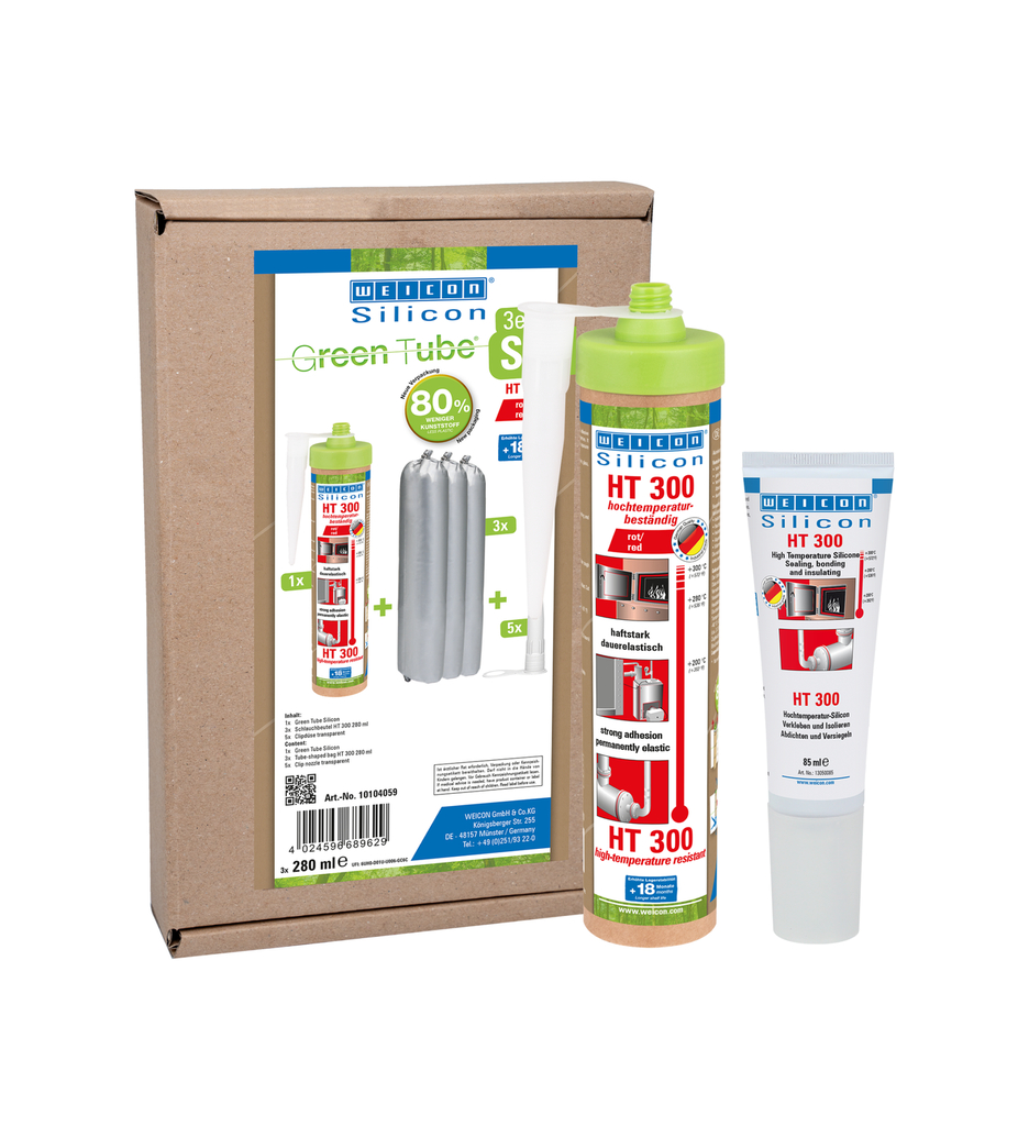WEICON HT 300 is hoogtemperatuursbestendig (+300 °C/+572 °F), oplosmiddelvrij, sterk hechtend, acetaatverbindend, weers-, verouderings- en chemicaliënbestendig en extreem elastisch (rek bij breuk ca. 300% ) Het product is bijzonder geschikt voor door hitte belaste verlijmingen en afdichtingen en hecht zeer goed op staal, aluminium, glas, keramiek en vele andere materialen. Het lijm- en afdichtingsmiddel kan in industriële ovens, rook/gas installaties, verwarmingsinstallaties, uitlaatpijpen, verwarmingskasten en in vele andere gebieden worden toegepast.