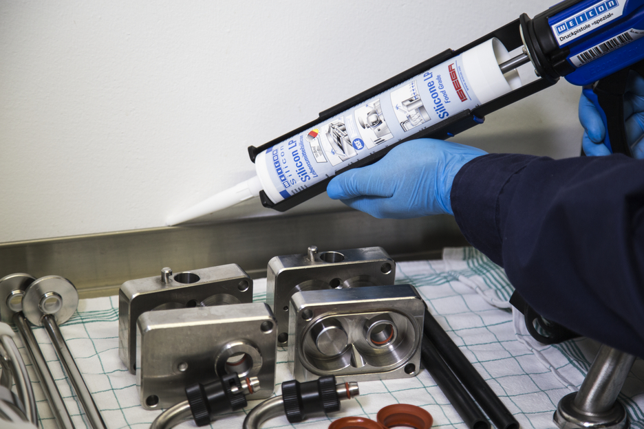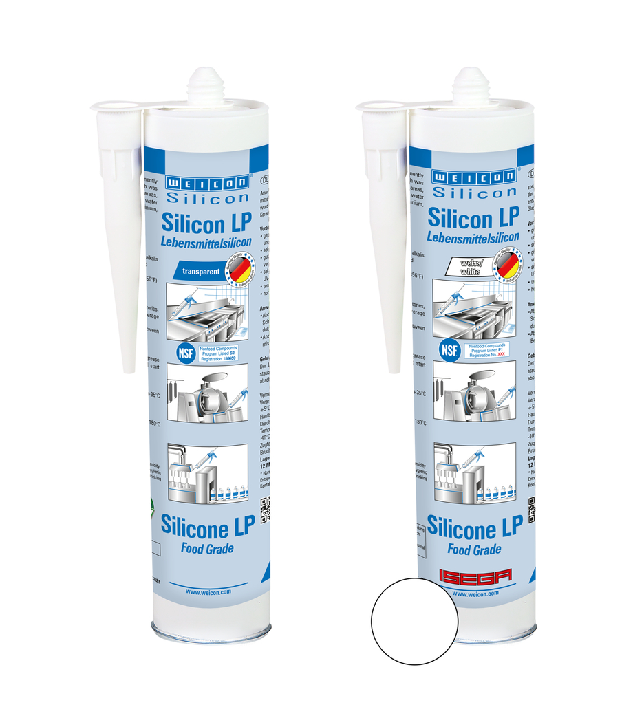 WEICON Siliconen LP is een acetaatverbindend, duurzaam elastisch lijm- en afdichtingsmiddel. Het is bestendig tegen chemicaliën, veroudering, weersomstandigheden en UV straling en het beschikt over een hogere temperatuursbestendigheid tot +180 °C (+356 °F). Het hecht zeer goed op staal, aluminium, glas, kunststoffen en vele andere materialen. Siliconen LP is speciaal ontwikkeld voor toepassing in sensibele industriën. Het wordt gebruikt voor afdichting in de levensmiddelen-industrie, bij drinkwater, bij bijvoorbeeld melkveehouderij, slachterij, dranken- en levensmiddelenproductie of in grootkeukens. Getest door het ‘Hygiene-Institut des Ruhrgebiets’ volgens KTW-richtlijn van het ‘ Umweltbundesamt’.