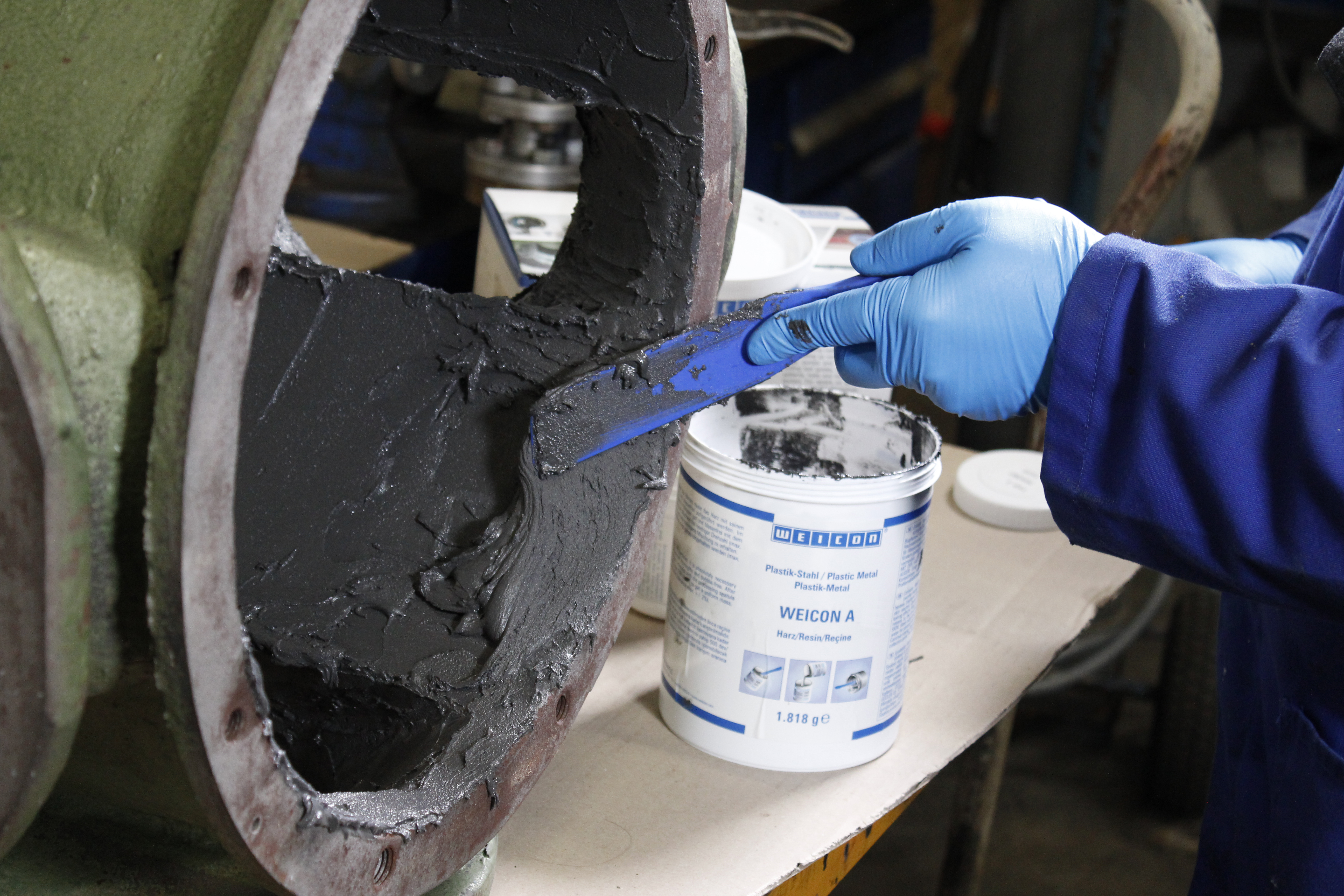 WEICON A heeft een DNV-certificaat en is bijzonder geschikt voor reparatie- en onderhoudswerkzaamheden in de maritieme industrie. Het epoxyharssysteem is sterk gevuld met staalpigmenten, magnetisch en zo pasteus dat het zelfs op verticale oppervlakken kan worden aangebracht. Het kan worden gebruikt om corrosieschade en putjes te verwijderen of om gaten en blaasgaten te repareren. Het kan bijvoorbeeld worden gebruikt om zware stalen onderdelen te reproduceren die ernstige schade vertonen door corrosie en pitting. WEICON A is een echt alternatief voor opbouwlassen, omdat de epoxyhars tijdens het verwerken geen warmtevervorming veroorzaakt zoals bij lassen het geval is. Het 2-componentensysteem kan worden gebruikt voor reparaties aan tanks en leidingen en voor het repareren van scheuren in motor- of pomphuizen en machineonderdelen. Het is ideaal voor gebruik in afvalwatersystemen waar pijpen en leidingen worden blootgesteld aan sterke media-invloeden. Andere toepassingsvoorbeelden zijn het maken van modellen, mallen, gereedschappen en klemmen. WEICON A kan worden gebruikt in de machinebouw, gereedschapsmakerij, cementindustrie, krachtcentrales, model- en matrijzenbouw en vele andere industriële sectoren.