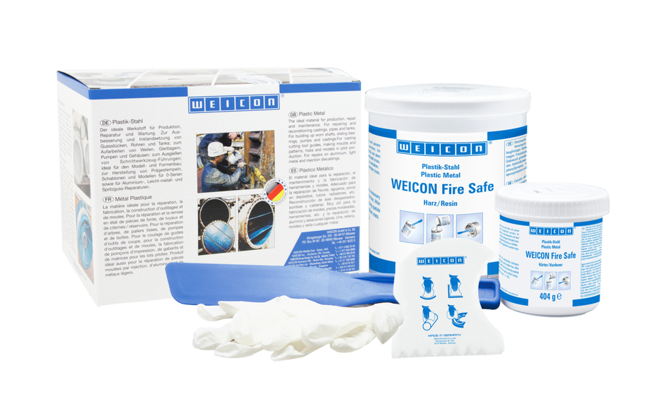 WEICON Fire Safe is een witte, vlamvertragende, troffelbare 2-componentenlijm. Het is geschikt voor toepassingen op het gebied van brandbeveiliging en wordt gebruikt voor het bevestigen van slijtvaste keramische of stalen onderdelen op allerlei ondergronden, zoals metaal, beton en dergelijke. Het lijmsysteem is zeer goed hechtend, hard-flexibel na uitharding en is aangepast om slagvast te zijn. De lijm wordt zelfs onder de meest extreme omstandigheden niet bros. Het vertoont goede slijtagebeschermende eigenschappen bij deeltjeserosie, heeft een goede chemische weerstand en is oplosmiddelvrij. WEICON Fire Safe bevat additieven die zichzelf binnen enkele seconden doven. Het is getest volgens EN 13501-1:2018 (EN 13823 en EN ISO 11925-2) en geclassificeerd als B‑s3, d0.