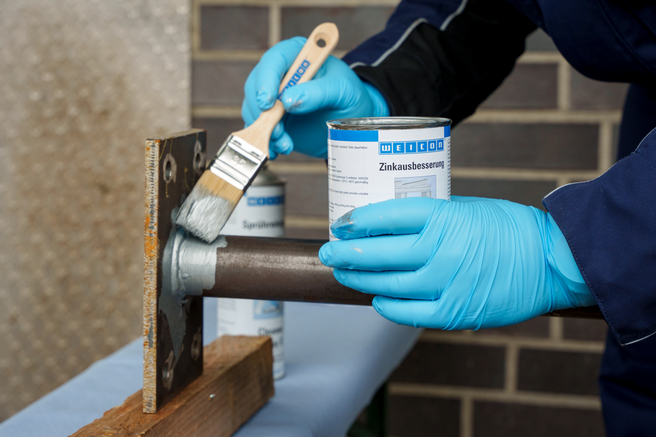 WEICON Zink Coating is een actieve corrosiebescherming voor alle metalen oppervlakken die qua kleur op thermisch verzinkt lijkt. Bij WEICON Zink Coating leggen plaatjesvormige metaalpigmenten (flakes) zich parallel ten opzichte van het oppervlak in meerdere, ruimtelijk verspringende lagen op de ondergrond (dakpaneffect). Ook bij een dun aangebrachte laag wordt op deze wijze een hoge corrosiebescherming bewerkstelligd. Daarmee wordt voldaan aan de eisen zoals gesteld in DIN EN ISO 1461 Daardoor wordt het oppervlak langer tegen binnendringend vocht beschermd. In combinatie met de gelijktijdige elektrochemische werking wordt een optimale corrosiebescherming bereikt.