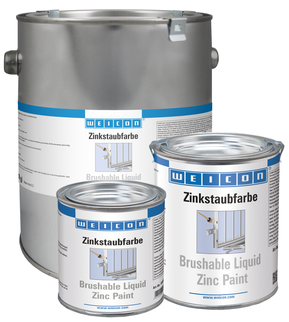 WEICON Zink Verf is een coating uit metaalpigmenten waarmee metalen ondergronden actief tegen corrosie worden beschermd. WEICON Zink Verf gebruikt sferische (ronde) metaalpigmenten in een hoge concentratie en met een hoge zuiverheid. Het hoge zinkgehalte in de coating zorgt voor een efficiënte kathodische corrosiebescherming. Voor het herstellen en coaten van profielen, poorten, deuren, leuningen, masten, palen, machine-onderdelen enz. Daarmee wordt voldaan aan de eisen zoals gesteld in DIN EN ISO 1461 Als het oppervlak beschadigd raakt, reageren de zinkmoleculen met het vocht in de lucht en vormen zinkoxidemoleculen, die het onderliggende (grond)materiaal tegen corrosie beschermen.